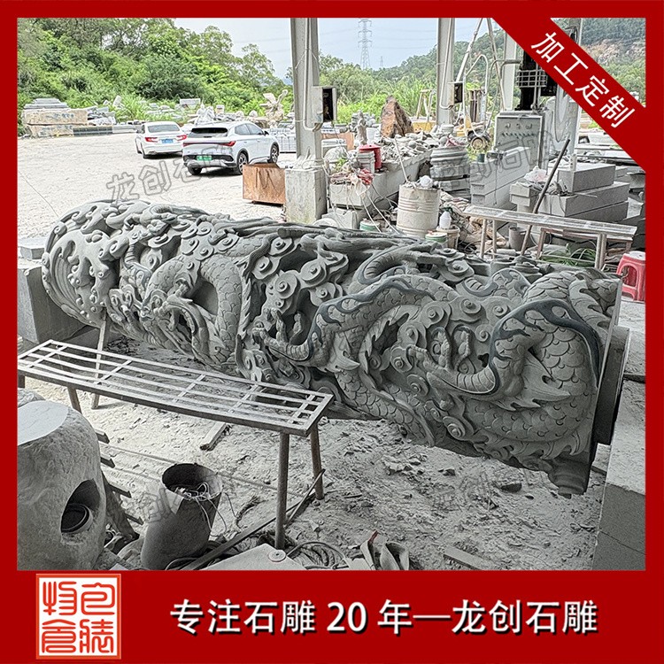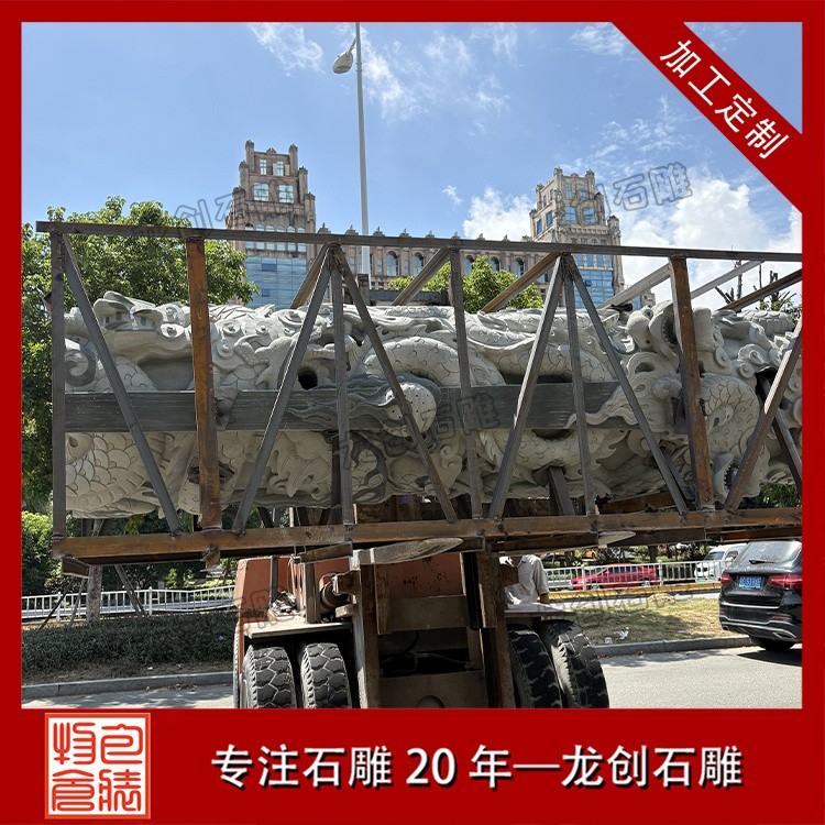 • 雕刻技法:局部磨光面+荔枝面+機切面,龍身浮 12-15公分(龍身分三段)